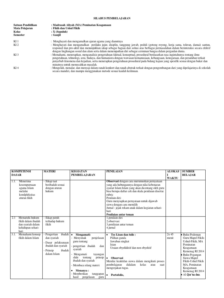 Dalam silabus fiqih ma kelas x, xi, xii ini memuat rincian kd, materi pembelajaran, dan kegiatan pembelajaran.